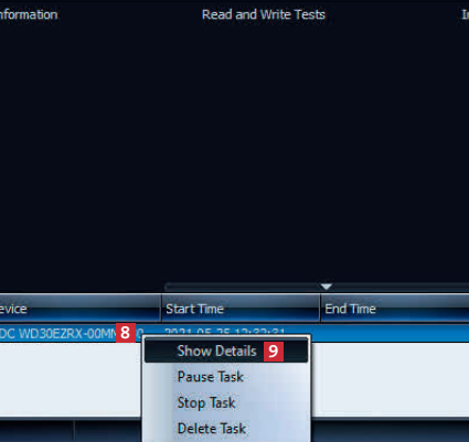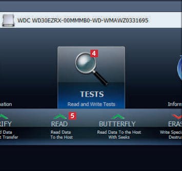 Klicka på TESTS 4 och välj READ 5. Ett lästest kommer att utföras på hårddisken som kommer att visa om det finns några fel på enheten som gör att filer inte kan läsas.