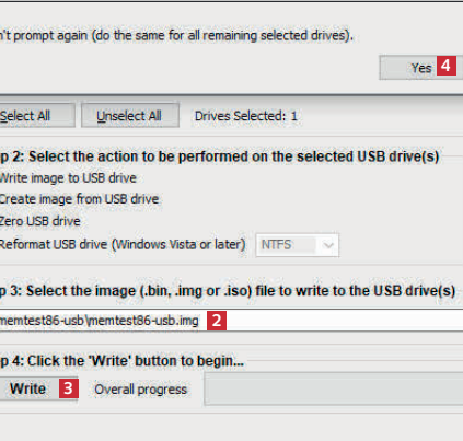Det hittar automatiskt operativsystemet för USB-minnet 2. Klicka på Write 3. Tänk på att filerna på USB-minnet kommer raderas. Klicka på Yes 4 och sedan på Ja.