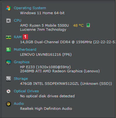 Med programmet Speccy kan du enkelt se vilken typ av RAMminne datorn har så att du vet vilken typ av minnen du ska köpa om du behöver byta ut moduler vid ett eventuellt haveri.