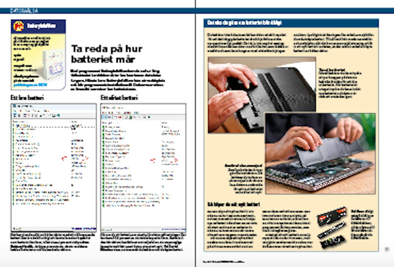 Här har vi undersökt en bärbar dator med ett välfungerande batteri. Det är särskilt viktigt att kontrollera den kapacitet som batteriet har kvar, vilket visas i procent vid punkten Battery Health. Ju lägre procentsats, desto snabbare laddas batteriet ur när du använder datorn.