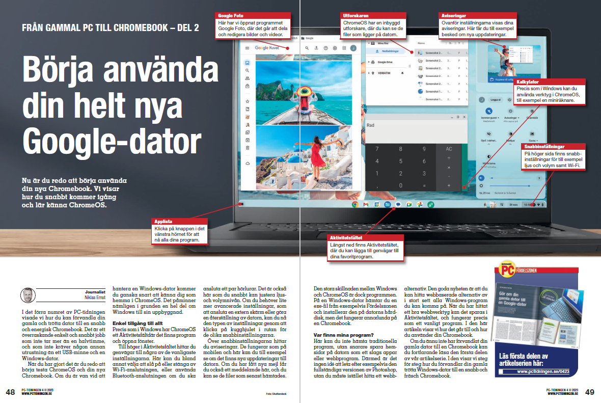 Eftersom den ändå inte på allvar klarar av att köra stora och tunga program är jag nöjd med ChromeOS, som på sätt och vis nästan kan jämföras med en riktigt avancerad webbläsare. Det är ett operativsystem som är helt perfekt för uppgifter som inte kräver så mycket av datorn. Det kan handla om att läsa och svara på mejl, kolla recept när jag lagar middag, se videor på YouTube och serier på Netflix samt skriva och redigera tester i Google Docs.