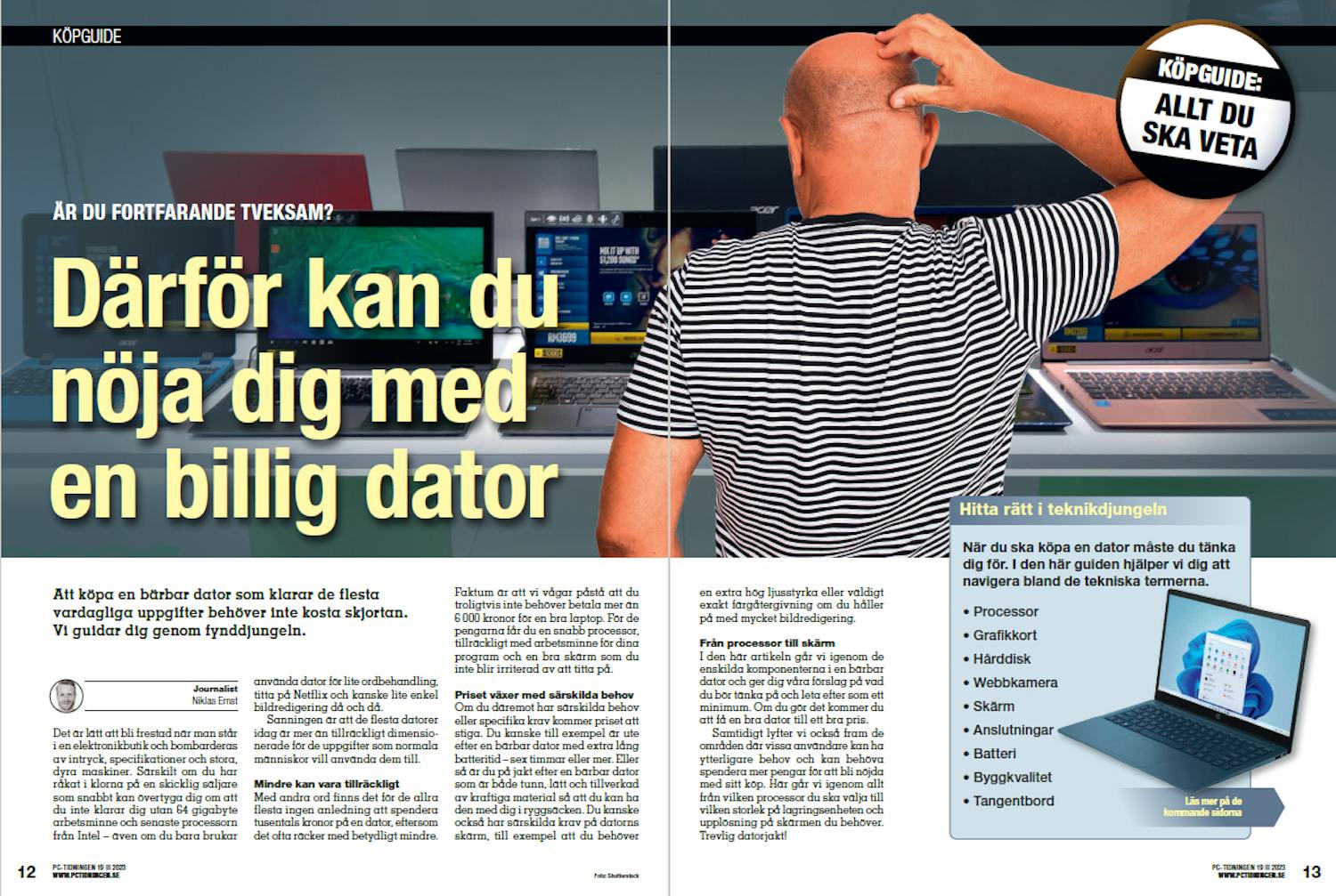 I den här artikeln går vi igenom de enskilda komponenterna i en bärbar dator och ger dig våra förslag på vad du bör tänka på och leta efter som ett minimum. Om du gör det kommer du att få en bra dator till ett bra pris. Samtidigt lyfter vi också fram de områden där vissa användare kan ha ytterligare behov och kan behöva spendera mer pengar för att bli nöjda med sitt köp. Här går vi igenom allt från vilken processor du ska välja till vilken storlek på lagringsenheten och upplösning på skärmen du behöver. Trevlig datorjakt!
