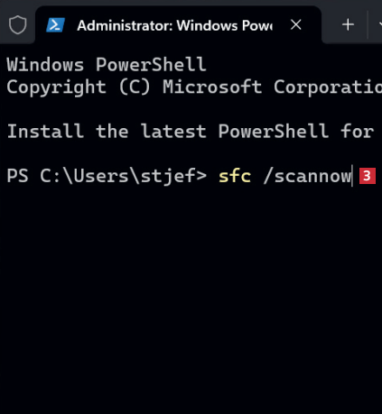 Skriv sfc /scannow 3 (tänk på mellanslaget efter sfc). Tryck på Retur. Vänta till datorn arbetat färdigt.