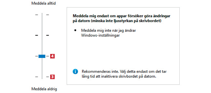 Det händer lite för ofta att Windows vill ha en bekräftelse när du gör en ändring på din dator. Den så kallade User Account Control kan ställas in på en lägre säkerhetsnivå så att du inte blir störd så ofta.