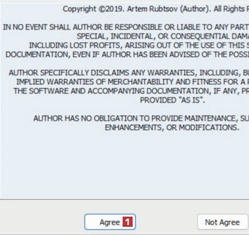 Hämta programmet HDDScan från vår webbplats, packa upp zip-filen och starta programmet. Första gången måste du klicka på knappen Agree 1.