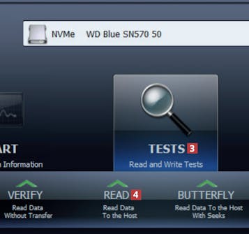 Klicka på TESTS 3 och välj testmetoden READ 4, som undersäker på filerna på enheten kan läsas utan några fel.