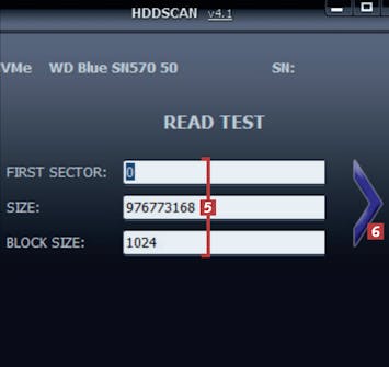 Låt de angivna värdena 5 vara och klicka på pilen 6. Låt programmet i fred. Det kan ta en timme eller mer att göra en kontroll av hela disken.