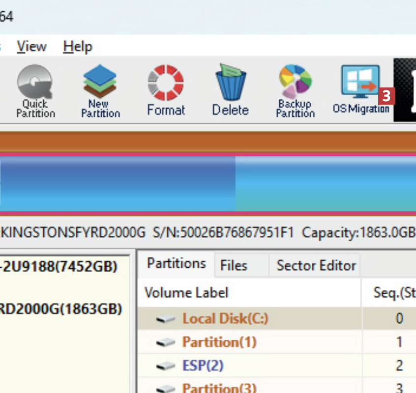 Hämta DiskGenius från vår hemsida och installera programmet. När du startar det klickar du på OSMigration 3 i menyn.