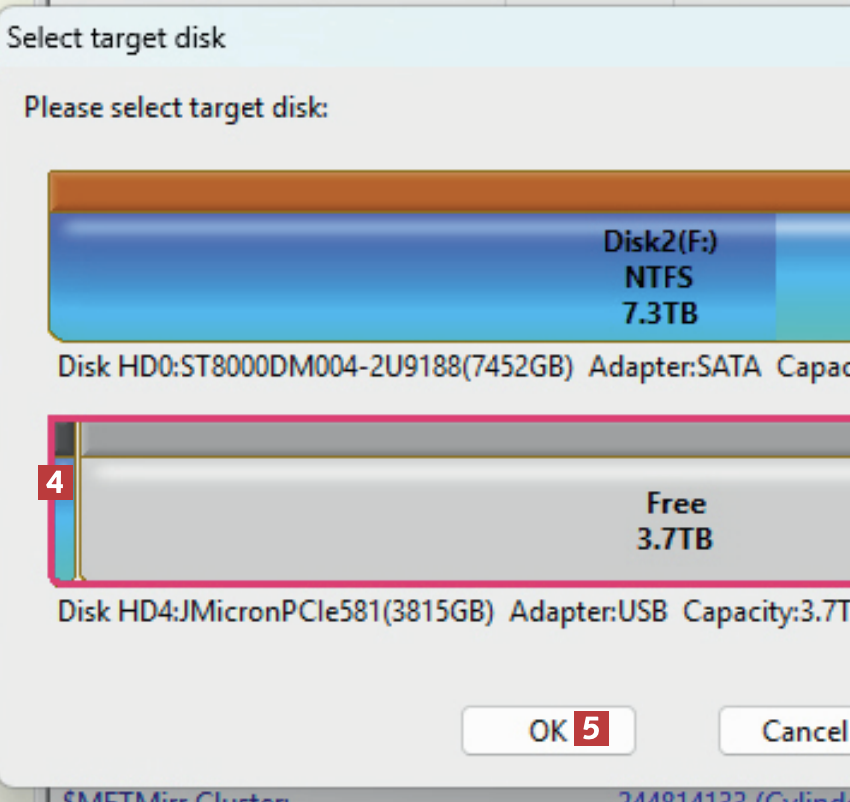 Om din nya enhet är större än den gamla måste du dra skjutreglaget 6 åt höger för att tilldela den nya C-enheten det extra utrymmet 7. Klicka sedan på Start längst ner.