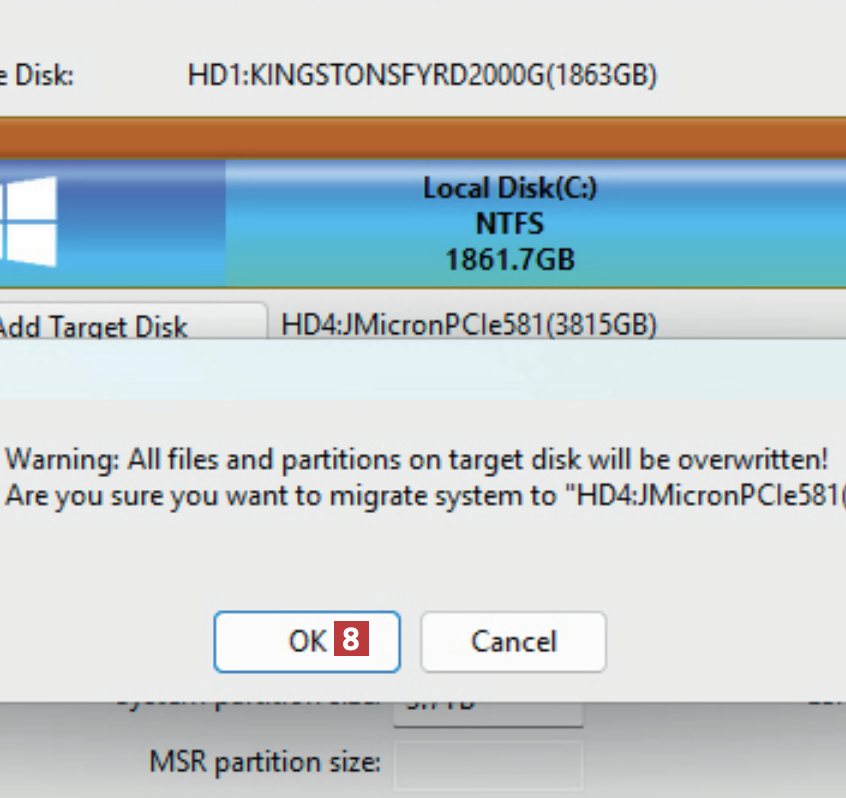 Klicka på OK 8 för att bekräfta att du vill skriva över allt på den nya enheten med en klon av Windowsenheten. Klicka sedan Hot Migration. Nu startar kopieringen.