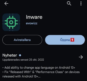 Börja med att hämta appen Inware från Google Play Store. När du har installerat den trycker du på knappen Öppna 1 .