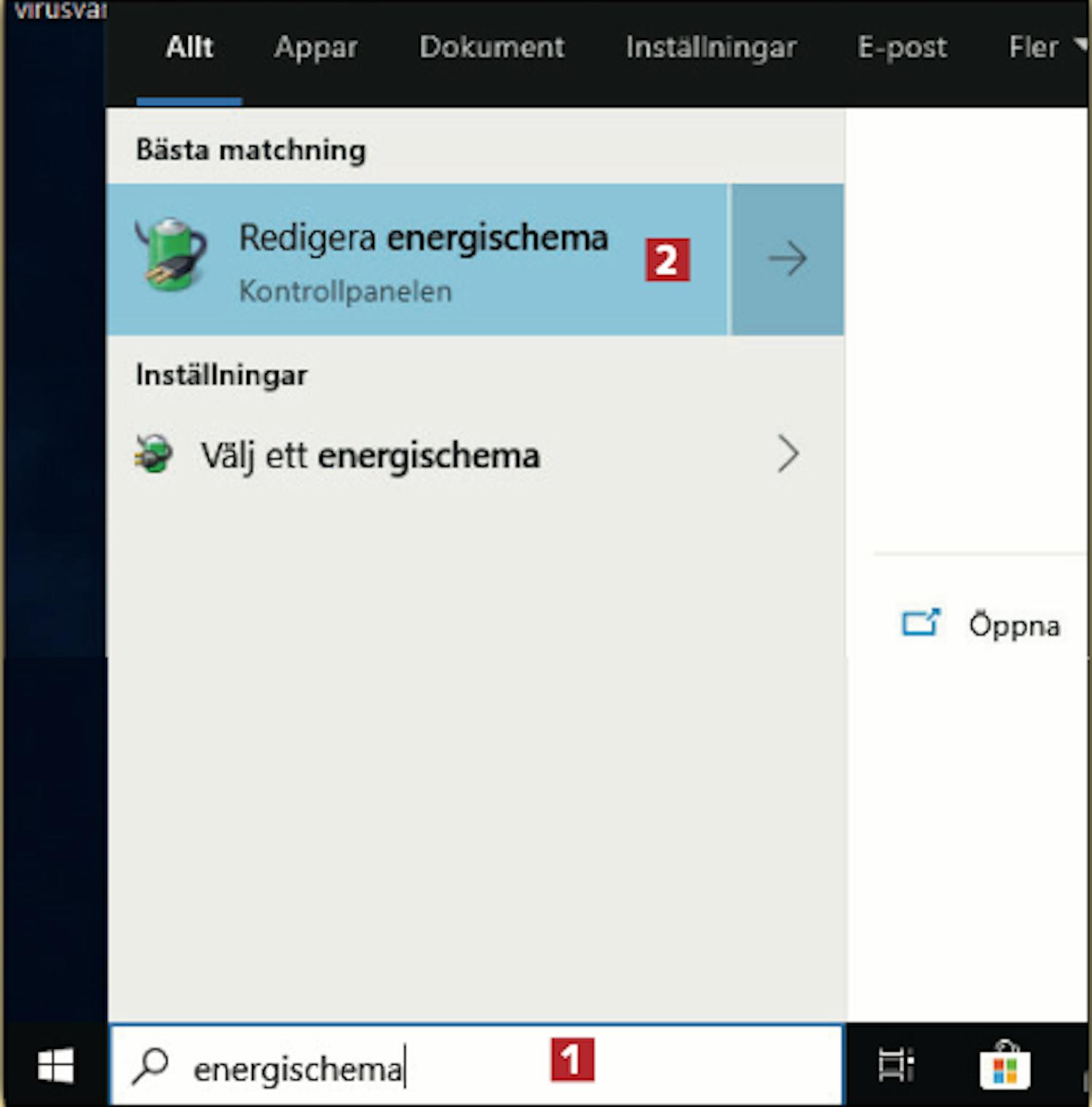 Skriv energischema 1 i sökfältet