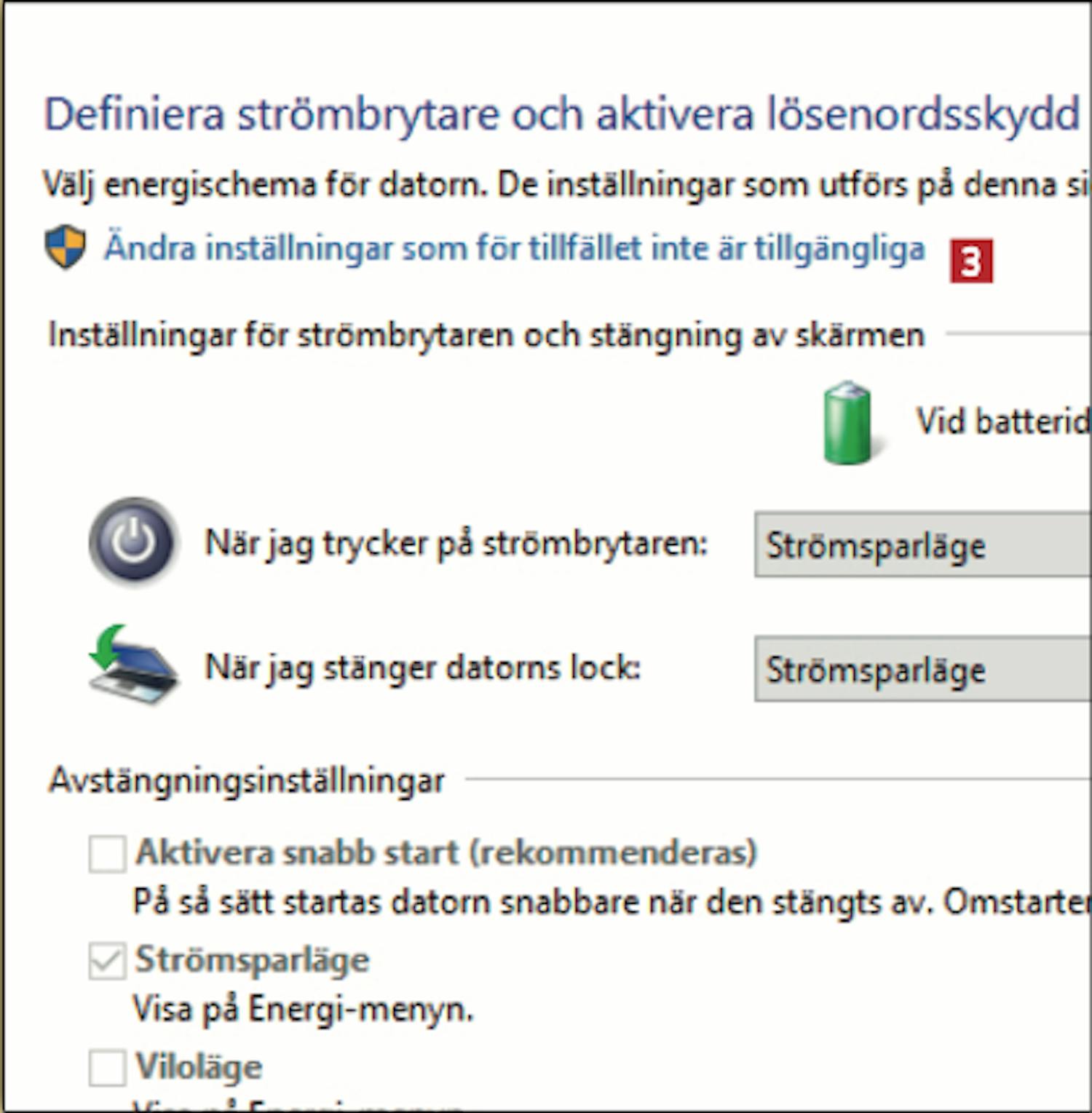 Klicka på Ange hur strömbrytarna
