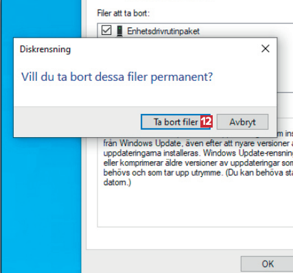 Se även till att markera Temporära filer 10 som kan ta upp åtskilliga gigabyte. Klicka slutligen på OK 11.