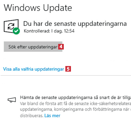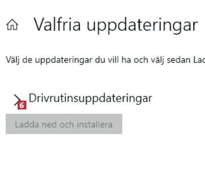 Här hittar du valfria drivrutinsuppdateringar för datorns inbyggda komponenter och anslutna enheter. Klicka på pilen 6.