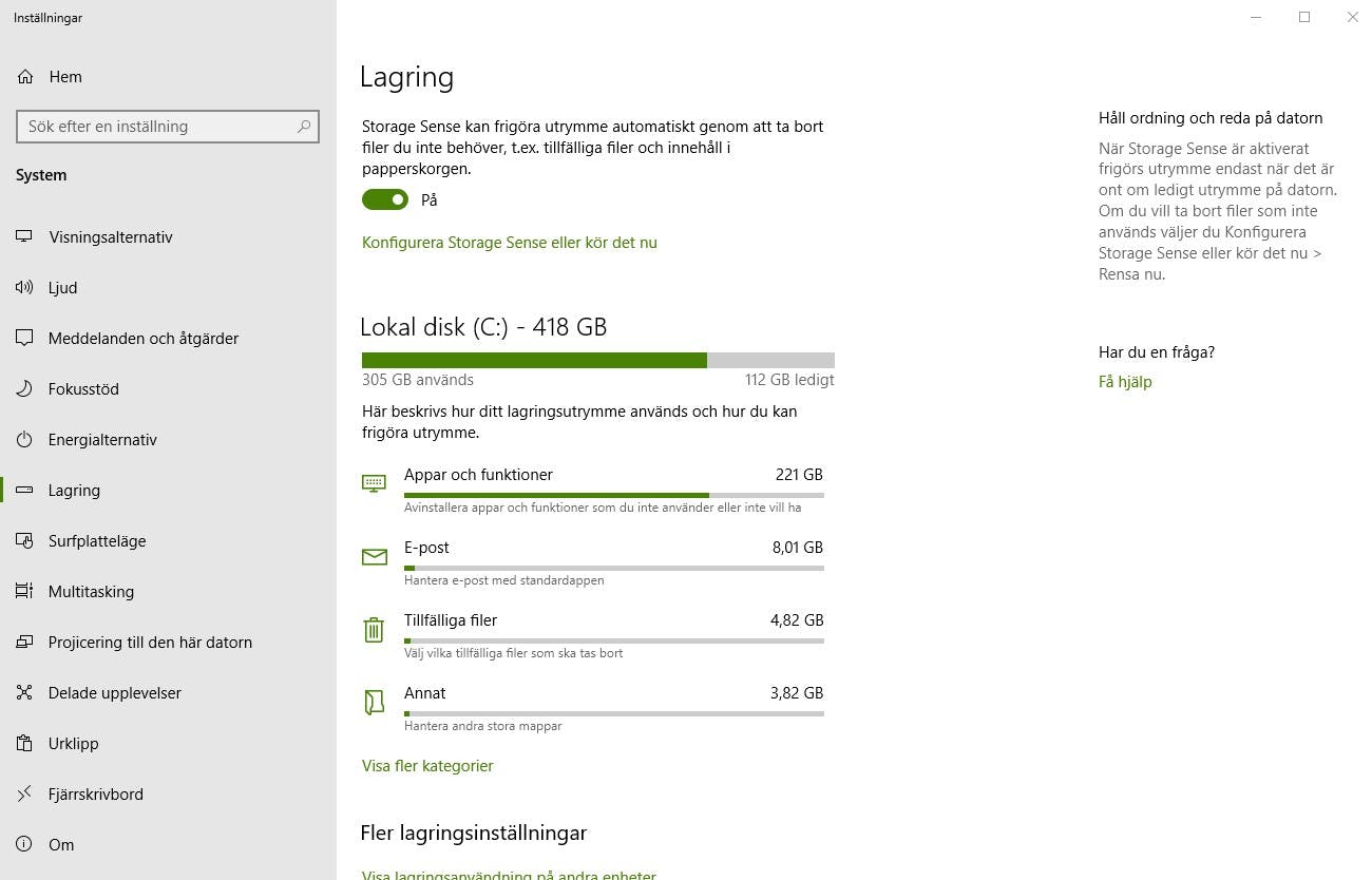 I Windows 10 finns det ett effektivt verktyg som kan städa bland de temporära filerna.