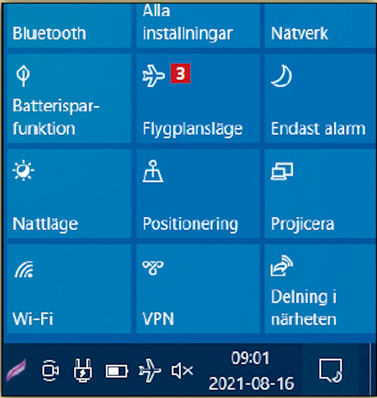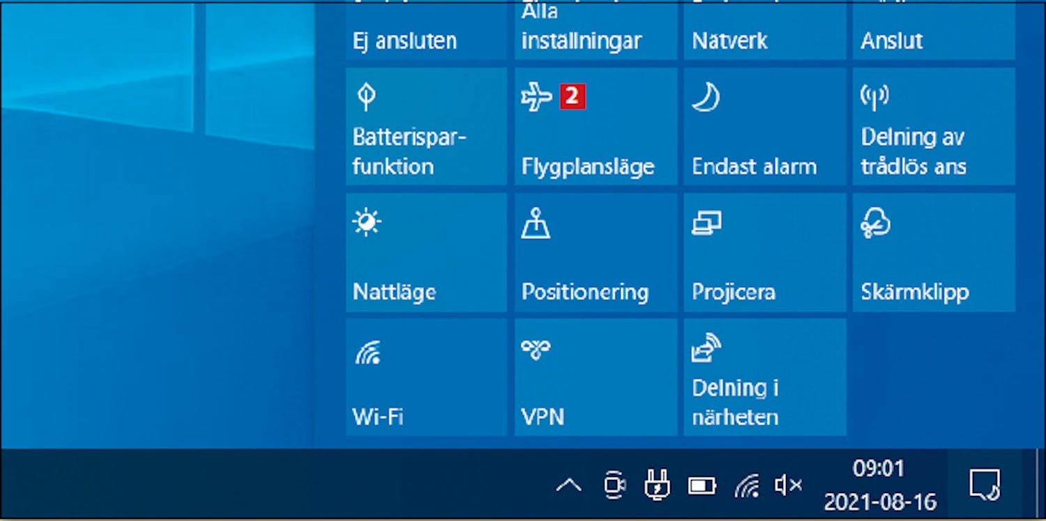 Klicka på den gråa ikonen för Flygplansläge 2 .