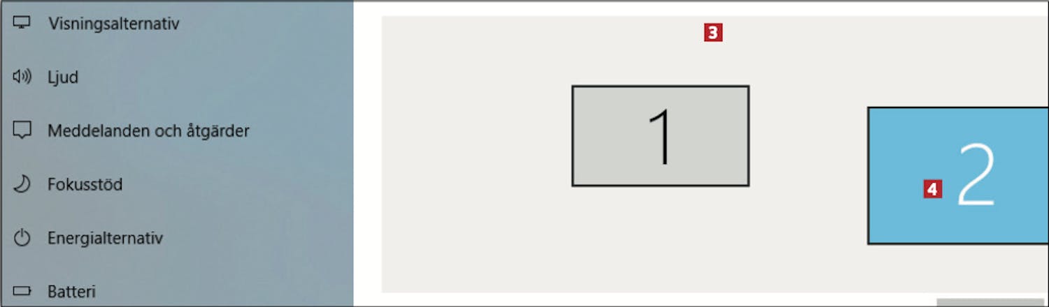 Nu ser du de båda skärmarna som två rektanglar 3 (i exemplet ovan tre skärmar).