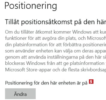 Se till att det står Positionering för den här enheten är på 5. Då fungerar verktyget hitta min enhet.