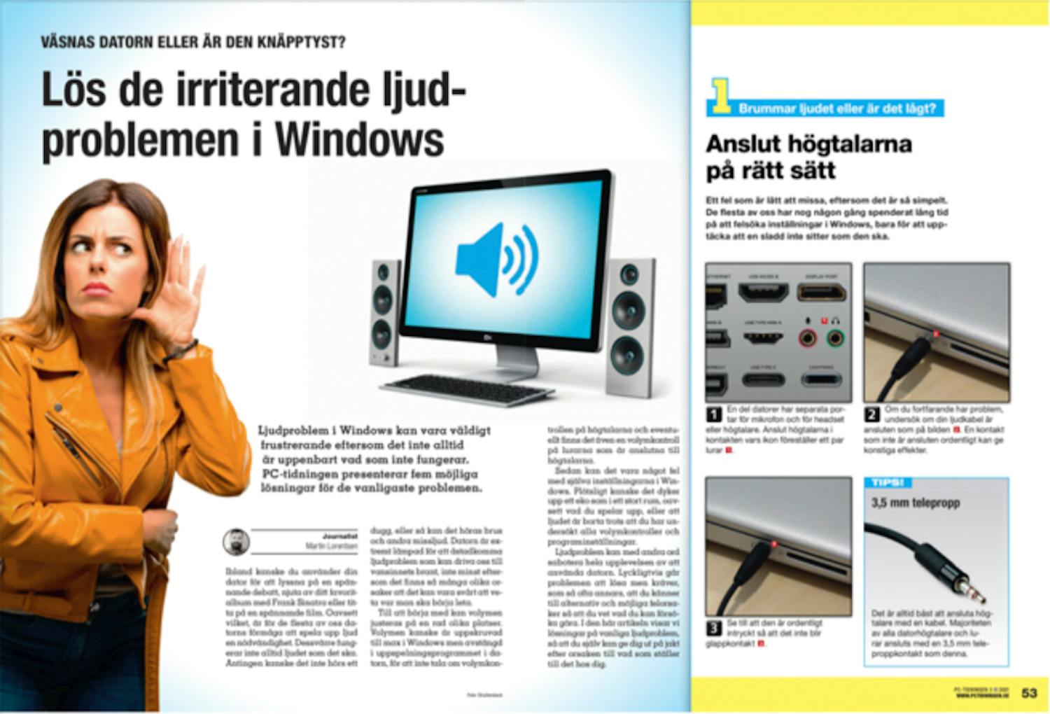 Ljudproblem kan med andra ord sabotera hela upplevelsen av att använda datorn. Lyckligtvis går problemen att lösa men kräver, som så ofta annars, att du känner till alternativ och möjliga felorsaker så att du vet vad du kan försöka göra. I den här artikeln visar vi lösningar på vanliga ljudproblem, så att du själv kan ge dig ut på jakt efter orsaken till vad som ställer till det hos dig.