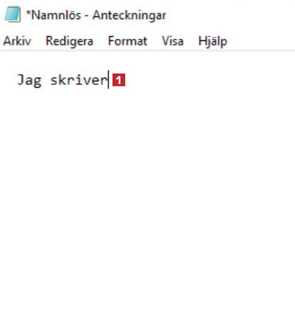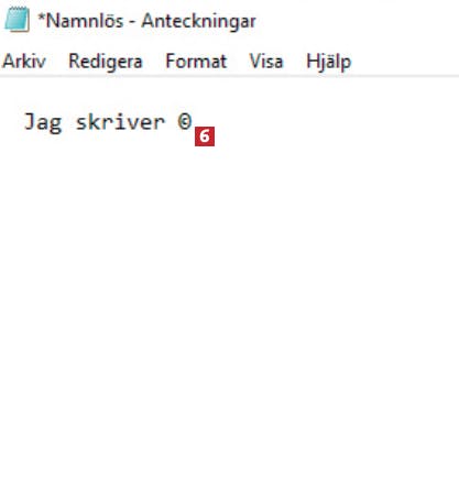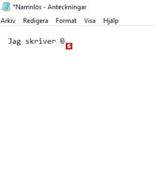 Först placerar du markören där du vill att tecknet ska visas 1. Det kan vara i Anteckningar som här.