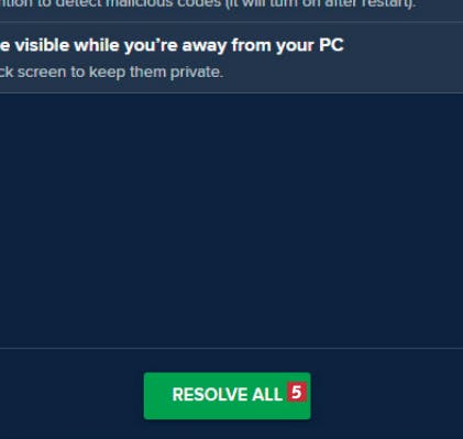 Om programmet hittar hot eller osäkra inställningar klickar du på Resolve all 5 för att ta hand om problemen.
