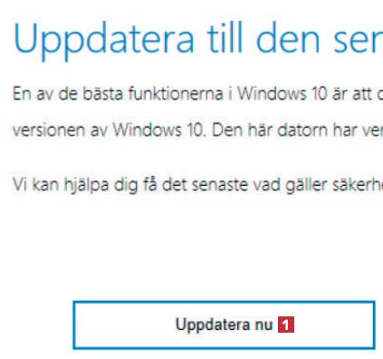 Hämta programmet från vår webbplats och starta det. Om datorn inte kör senaste versionen av Windows 10 visas detta. Klicka på Uppdatera nu 1.