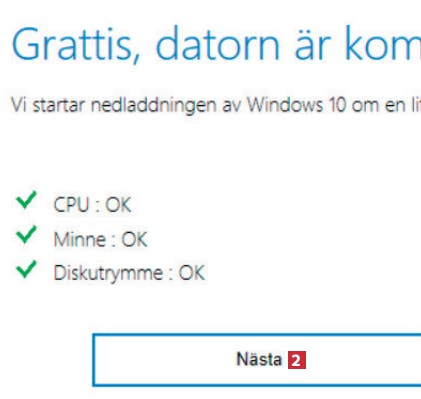 Programmet undersöker om datorn kan köra den senaste 22H2-versionen av Windows 10. Klicka på Nästa 2.