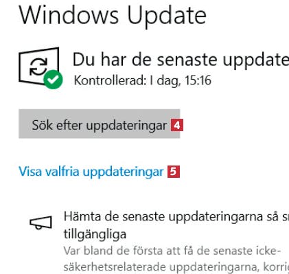 Här hittar du de valfria drivrutinsuppdateringar som kan finnas tillgängliga. Klicka på pilen 6 vid Drivrutinsuppdateringar.