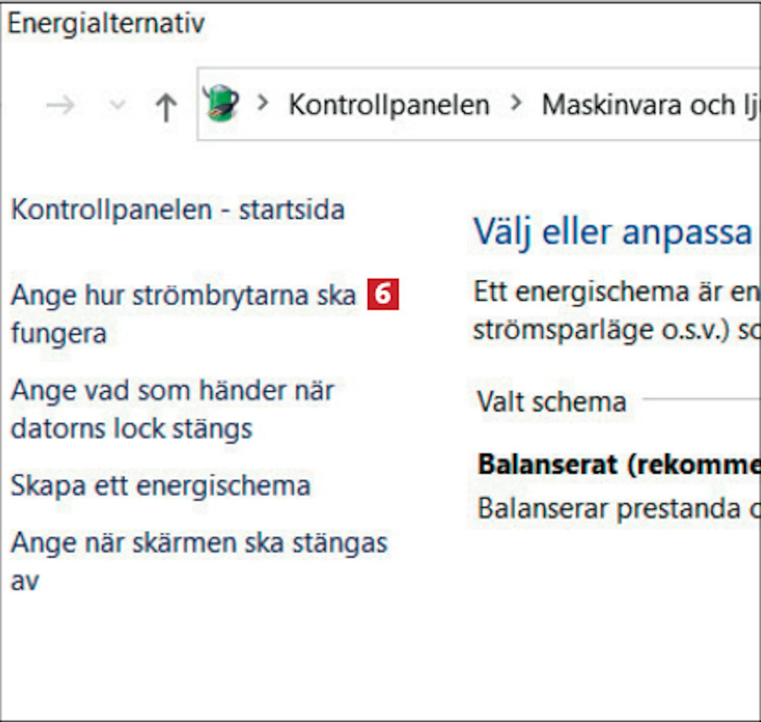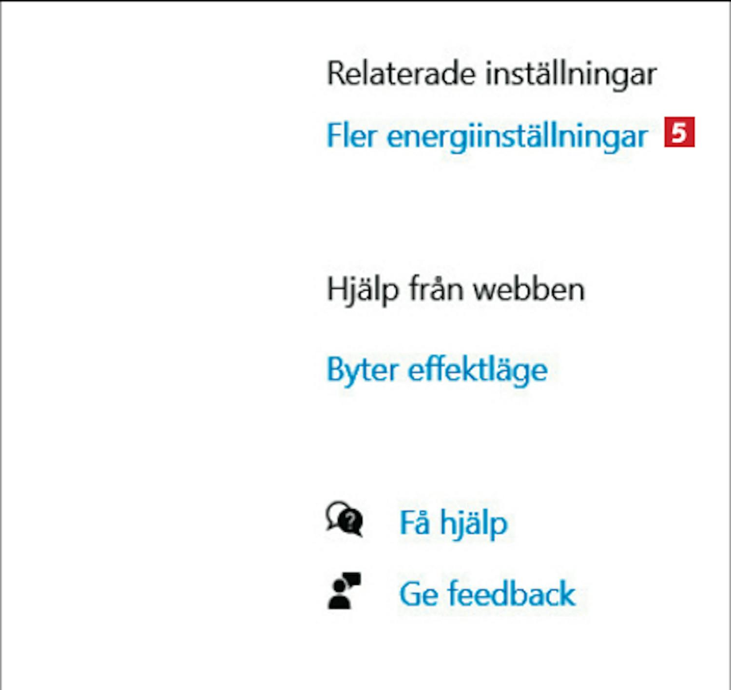 Klicka på Fler energiinställningar 5 i kolumnen ute till höger.