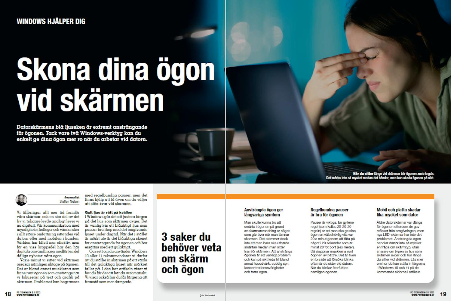 I Windows går det att justera färgen på det ljus som skärmen avger. Det är vanligtvis ett blåaktigt ljus som passar bra ihop med det omgivande ljuset under dagtid. När det i stället är mörkt ute är det blåaktiga skenet för ansträngande för ögonen och bör ersättas med ett gulaktigt. Oavsett om du använder Windows 10 eller 11 rekommenderar vi därför att du ställer in skärmen på att växla till det gulaktiga ljuset när mörkret faller på.