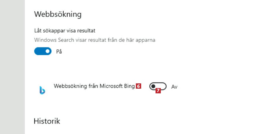 När jag vill söka på min dator via sökfältet i Windows 10 får jag också resultat från webben. Om jag var intresserad av att se dem skulle jag söka i en webbläsare. Kan jag bli av med dessa webbsökningar?