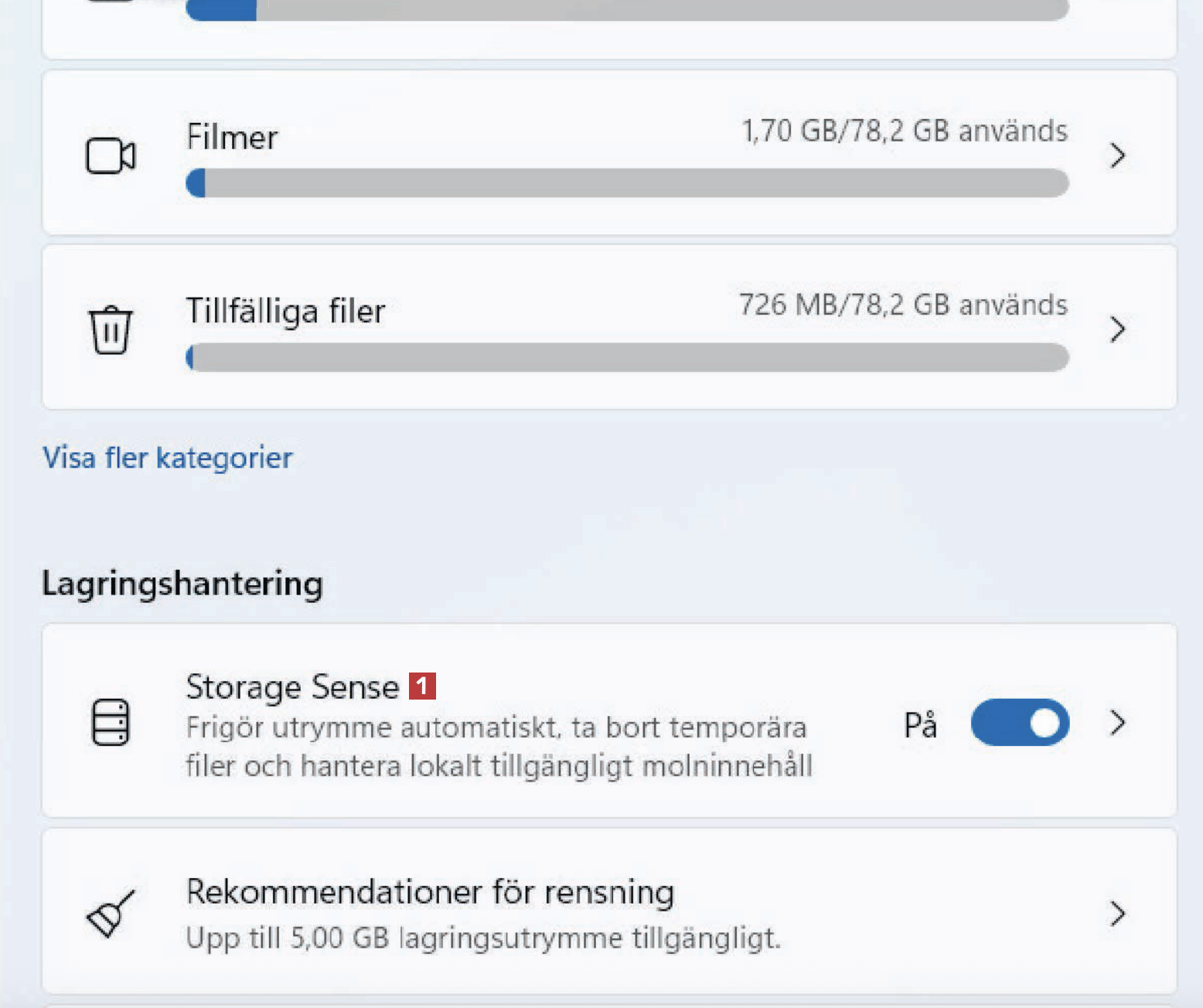 - 6. Håll koll på utrymmet med Storage Sense