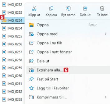För att ta reda på var ett foto finns i en mapp högerklickar du på fotot i galleriet 4 och väljer Öppna filsökväg 5.