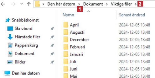 I Utforskaren behöver jag ofta kopiera en sökväg till en viss fil eller mapp. Det är dock ofta inte möjligt att kopiera sökvägen från adressfältet. Vad ska jag göra då?