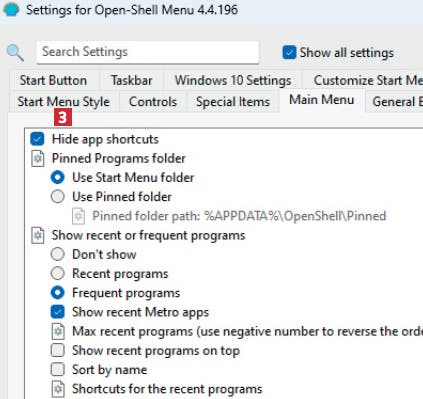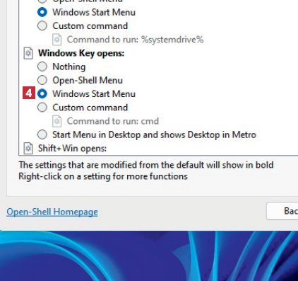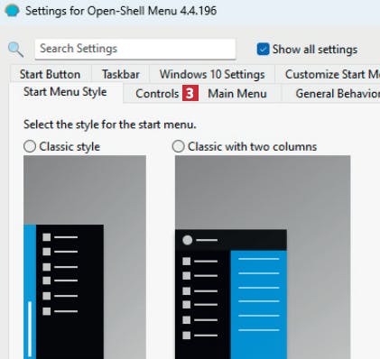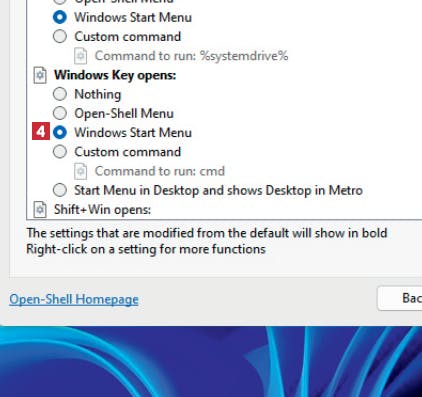 Om du emellanåt har nytta av den ursprungliga Startmenyn i Windows 11 kan du ställa in Open Shell så att den gamla Start-menyn öppnas när du trycker på Windows-tangenten på tangentbordet, medan den nya Start-menyn öppnas när du klickar på Start-knappen.