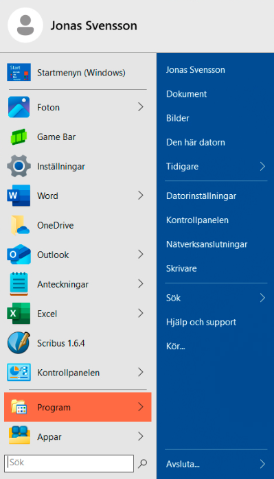 Om du klickar här visas en lista över alla program på datorn. Klicka på ett program för att öppna det.