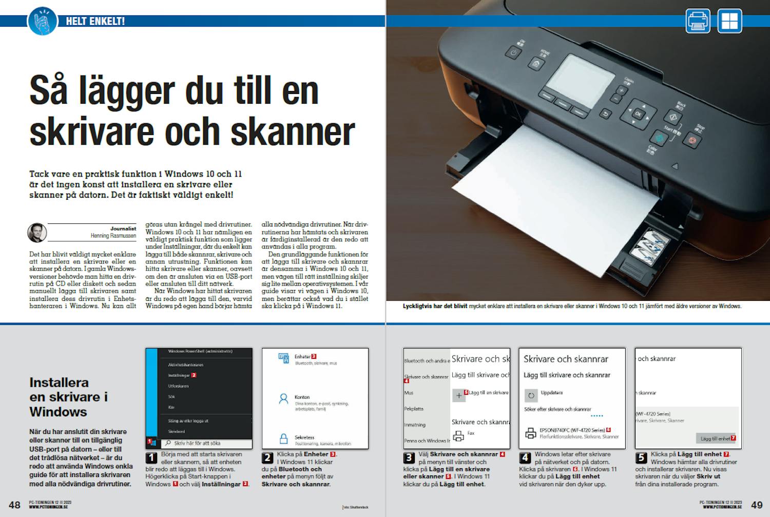 Det har blivit väldigt mycket enklare att installera en skrivare eller en skanner på datorn. I gamla Windowsversioner behövde man hitta en drivrutin på CD eller diskett och sedan manuellt lägga till skrivaren samt installera dess drivrutin i Enhetshanteraren i Windows. Nu kan allt göras utan krångel med drivrutiner.