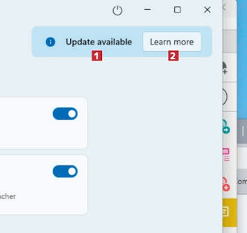 Om du redan har programmet installerat på din dator, se till att det är uppdaterat. Om du kan se fältet Update available 1 ska du klicka på Learn more 2.