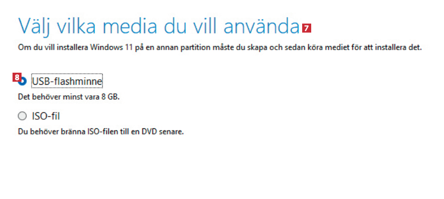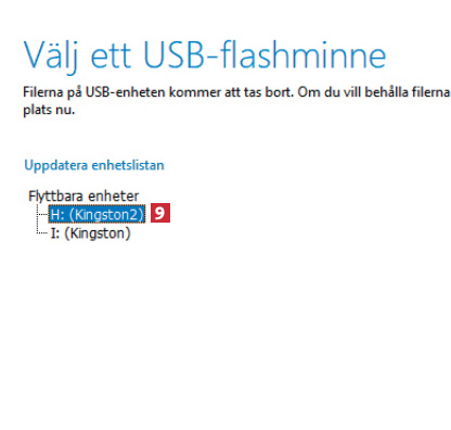 Sätt i det första USB-minnet i datorn. När du kommer till Välj vilka media du vill använda 7 väljer du USB-flashminne 8.