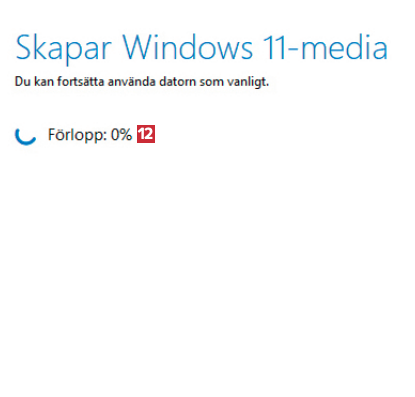 Nästa steg 12 är att förbereda USB-minnet så att Windows kan installeras från det. Det kan ta upp till 30 minuter, så vänta tålmodigt.