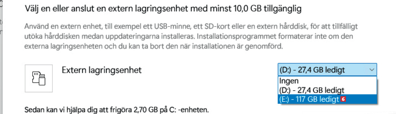 Det är här ditt andra USB-minne kan komma in i bilden. Om systemet bedömer att du inte har tillräckligt med utrymme för att installera Windows normalt, kan du välja att använda ett USB-minne. Välj USB-minne 6 och klicka på Nästa. Om du inte ser fönstret, gå direkt till steg 7 och fortsätt installationen på vanligt sätt.