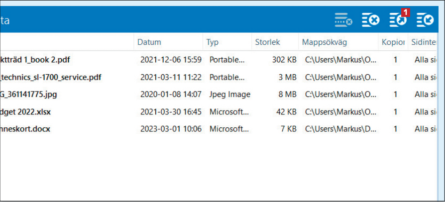När du samlar dokument och bilder för utskrift senare måste du spara utskriftskön i programmet, så att du kan fortsätta utan att hålla datorn igång. Du kan dessutom spara olika köer för utskrifter om du behöver skriva ut vid olika tidpunkter.
