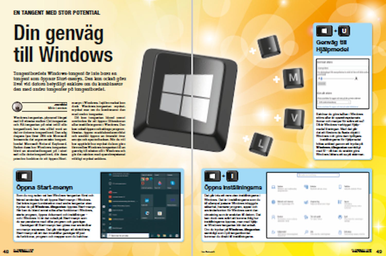 Sedan dess har Windows-tangenten blivit en standardtangent på i stort sett alla datortangentbord, där dess primära funktion är att öppna Start-menyn i Windows. I själva verket kan dock Windows-tangenten mycket, mycket mer om du kombinerar den med andra tangenter. Då kan tangenten bland annat användas för att öppna Utforskaren eller inställningarna i Windows. Den kan också öppna och stänga programfönster, öppna meddelandeområdet och snabbt öppna en översikt över emojis och specialtecken.