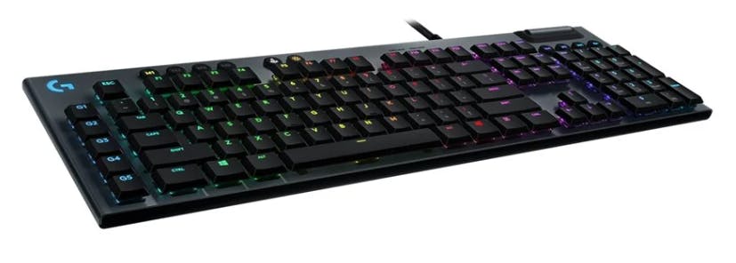 G815 har mekaniska tangenter. Det innebär att det under varje tangent sitter en omkopplare som aktiveras när tangenten trycks ned. I vanliga tangentbord trycker tangenterna på en gummibussning som i sin tur trycker ned ett membran, varpå signalen registreras. Mekaniska tangentbord är mer precisa och reagerar mer prompt. I G815 känns det tydligt när en tangent trycks ned och slaglängden (hur långt tangenten trycks ned) är lite kortare än i andra mekaniska tangentbord. Varje tryck ger ett skönt klickljud och det är trevligt att skriva på G815 – om det inte vore för att Entertangenten är så liten. Sin vana trogen leder det ofta till felslag. Under de tre veckor vi testar tangentbordet vänjer vi oss inte och i stället för radslut avslutas de flesta av undertecknads texter med en apostrof.