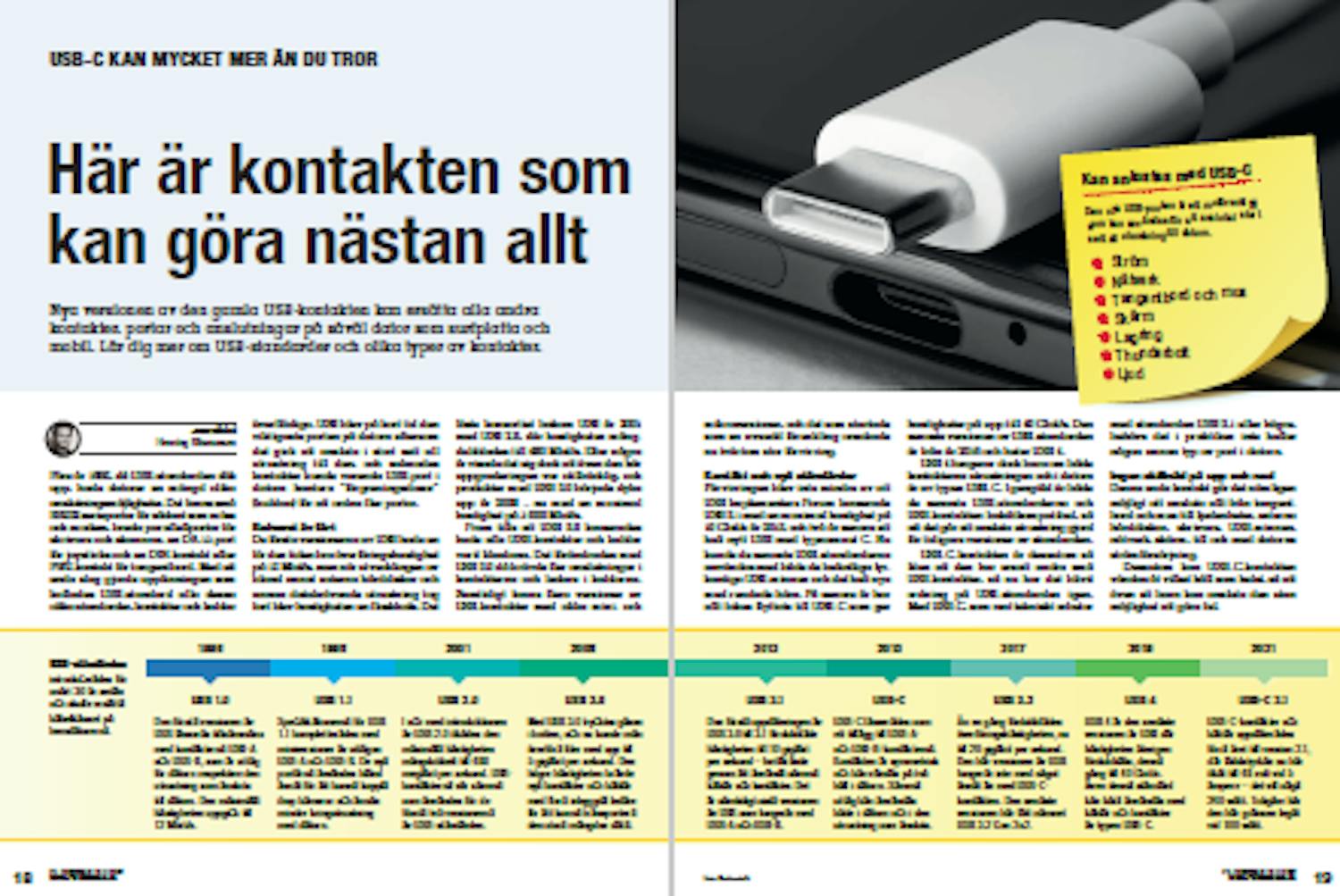 Den senaste versionen av USB-standarden är från år 2019 och heter USB 4. USB 4 fungerar dock bara om både kontakterna utrustningen och i datorn är av typen USB-C. I gengäld är både de senaste USB-standarderna och USB-kontakten bakåtkompatibel, så att det går att ansluta utrustning gjord för tidigare versioner av standarden. USB-C-kontakten är dessutom så liten att den har ersatt andra små USB-kontakter, så nu har det blivit ordning på USB-standarden igen.