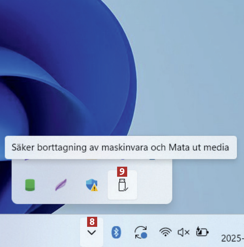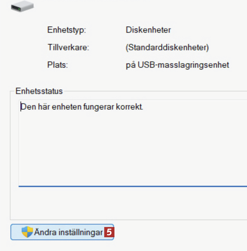 Välj Principer 6 och markera Bättre prestanda 7. Spara med Verkställ följt av OK. Nu kommer filöverföringar till och från USB-minnet att gå snabbare.