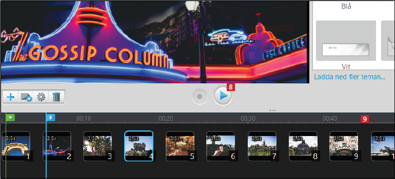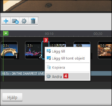 Om du vill ändra bildernas placering och hur lång tid de visas använder du tidslinjen längst ned. Vi visar de viktigaste detaljerna, men tänk på att programmet erbjuder många fler funktioner. Du har verkligen alla möjligheter att skapa det perfekta bildspelet.