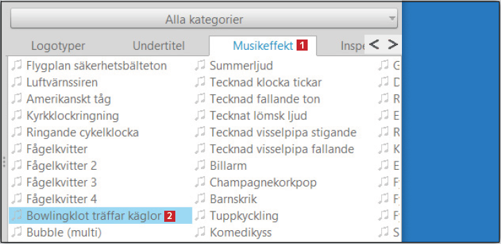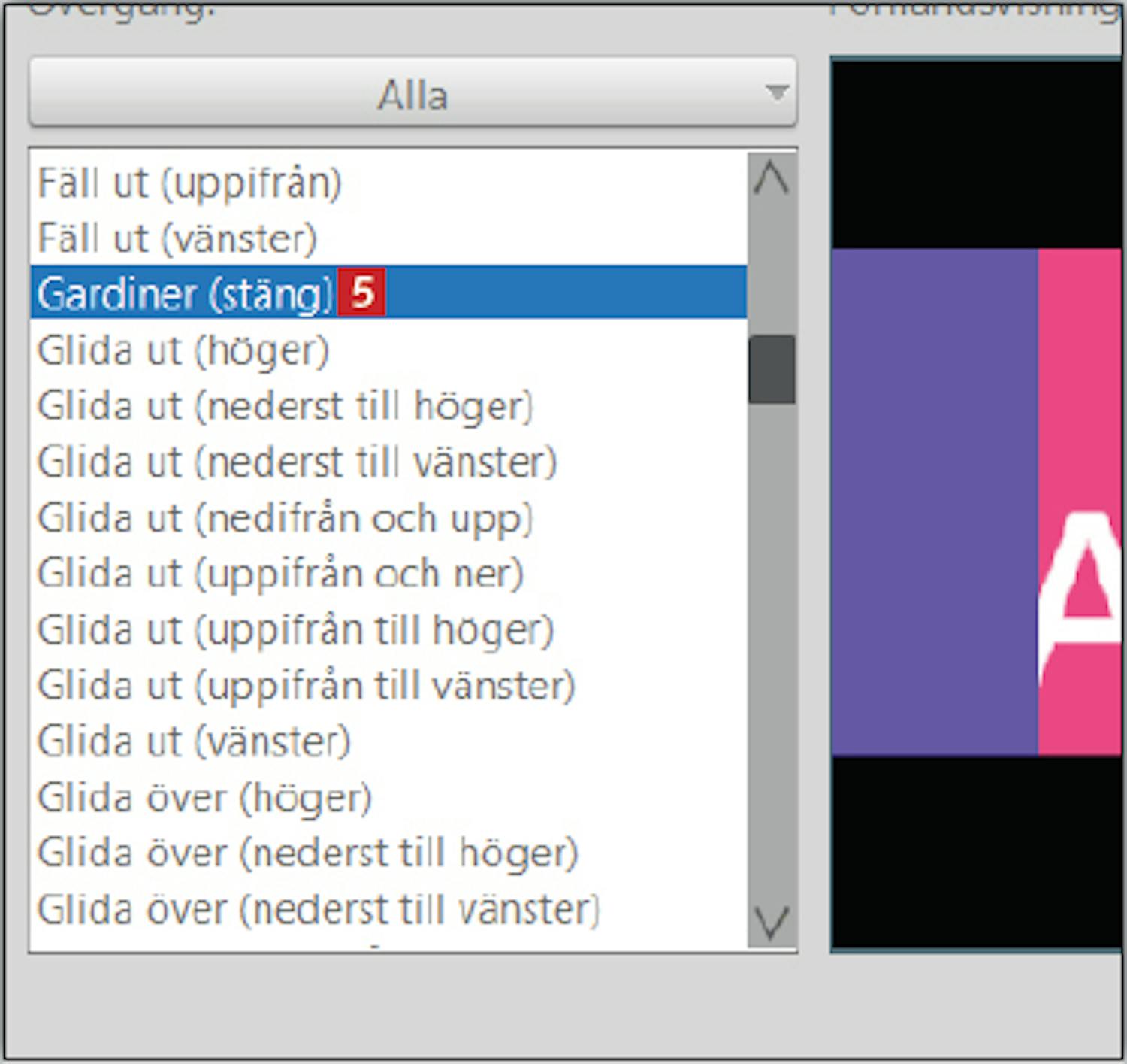 Missa inte menyn Musikeffekt. Totalt finns det nästan hundra effekter som du kan använda i ditt bildspel.