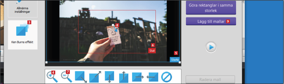 Som du kanske redan har märkt kan programmet lägga till extra effekter i bilderna, som att zooma och panorera över dem. I programmet kallas detta för Ken Burns-effekt och gör bildspelet mer levande. Här visar vi hur du kan styra effekterna.